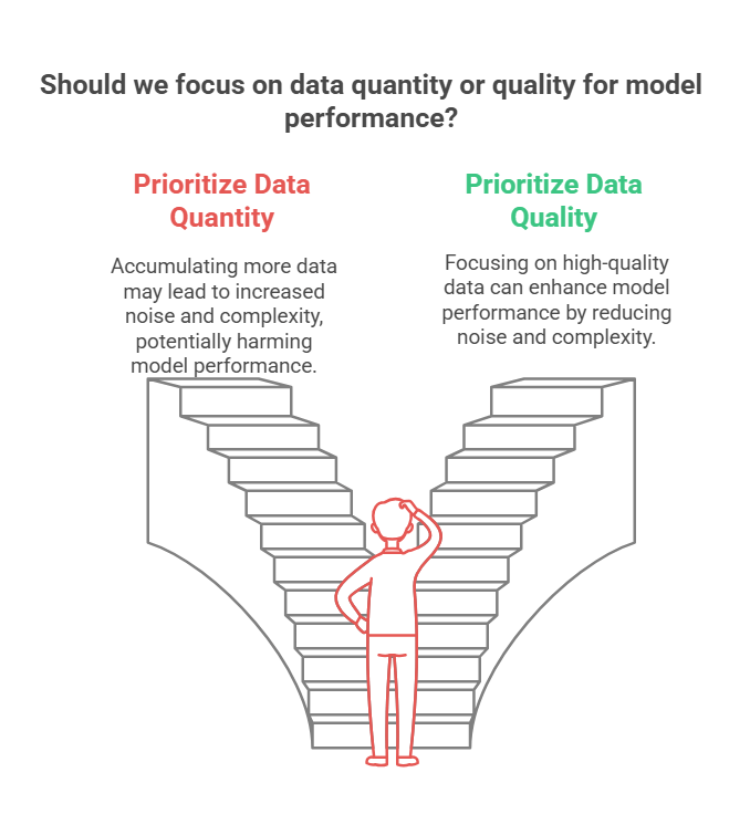 - Quality Over Quantity: More data doesn’t always mean better results. Garbage in, garbage out, if the data is unreliable, even millions of points won’t save the model.