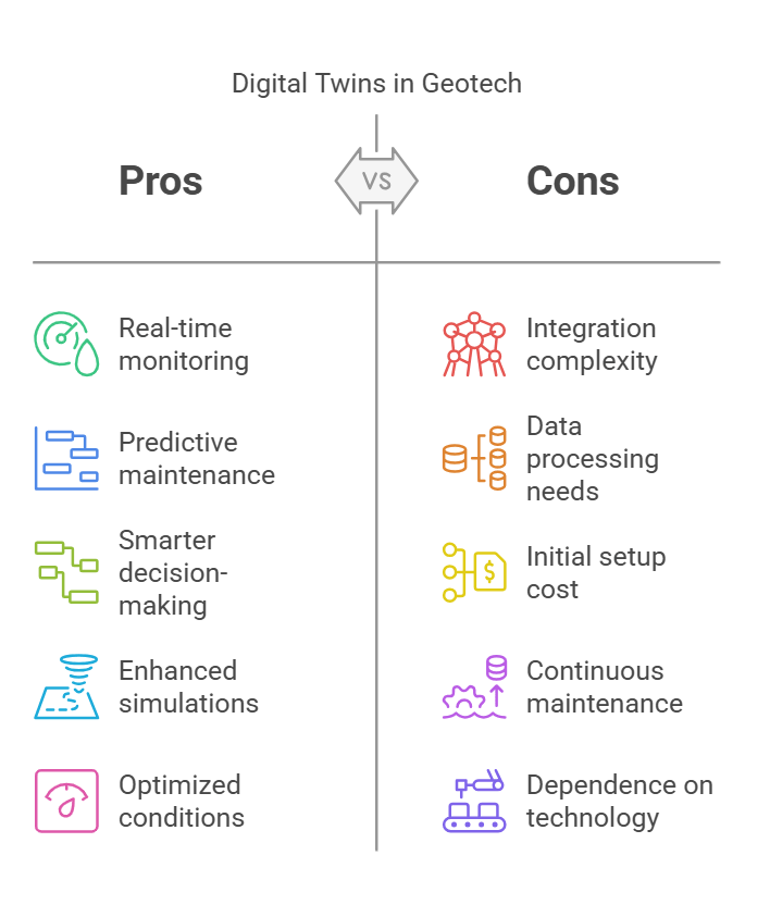 I think unlike conventional geotechnical models, digital twins are dynamic. They continuously update based on incoming field data, making them far more reliable for some applications like: